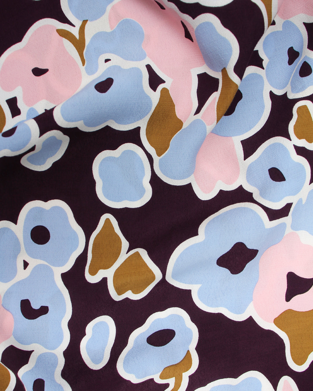 The Petal print is an over sized floral, increased the scale to become more abstract. Featuring a palette of Berry with highlights of pale pink, pale blue, tan and white.