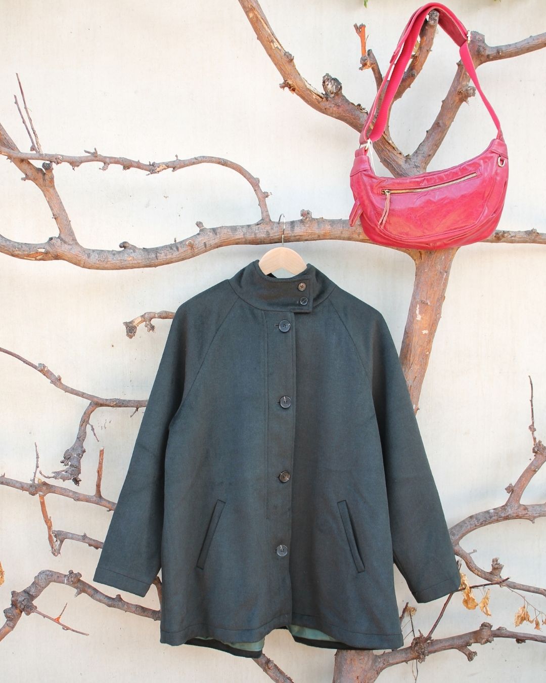 Red styled with the Lady Marmalade Jumper in Brick, Suede Belt in Tan, Rib Cage Manhattans in Black and Raspberry Coat