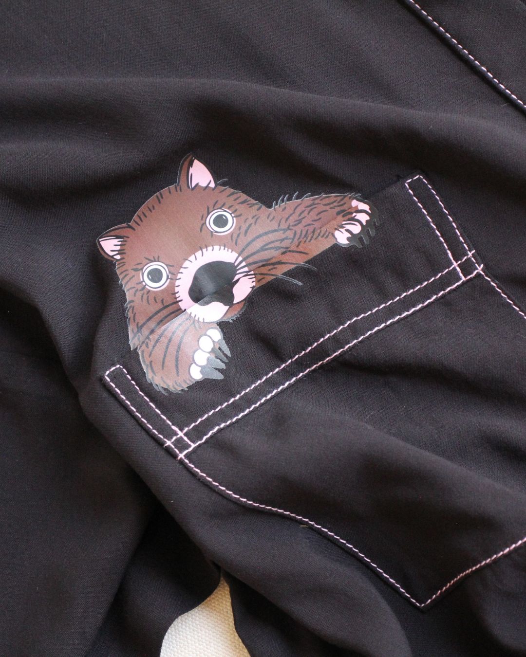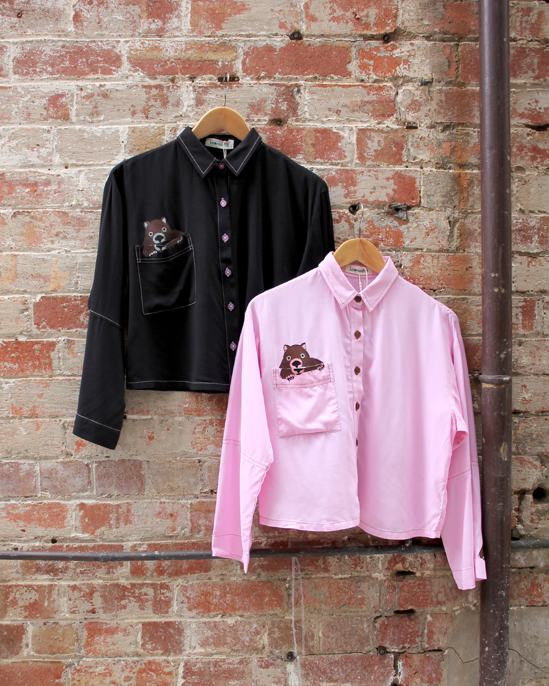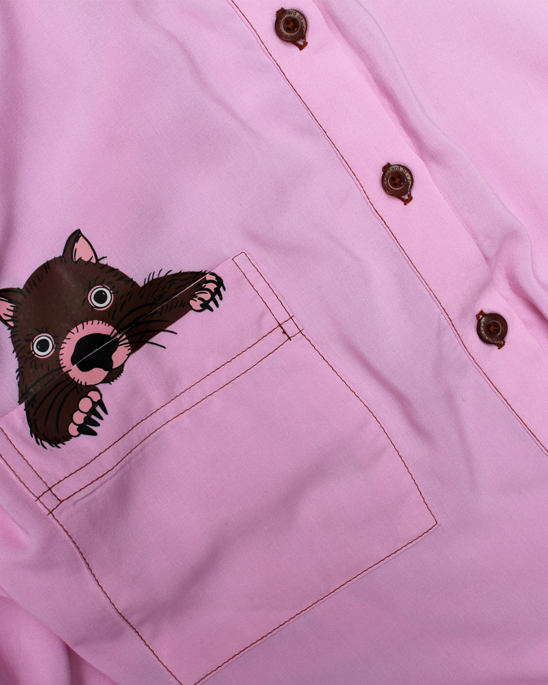 Classic button up shirt with our sweet Wombat print. Beautiful feature pocket and cuff with contrast stitching and buttons. Perfect for layering or wearing on it's own.