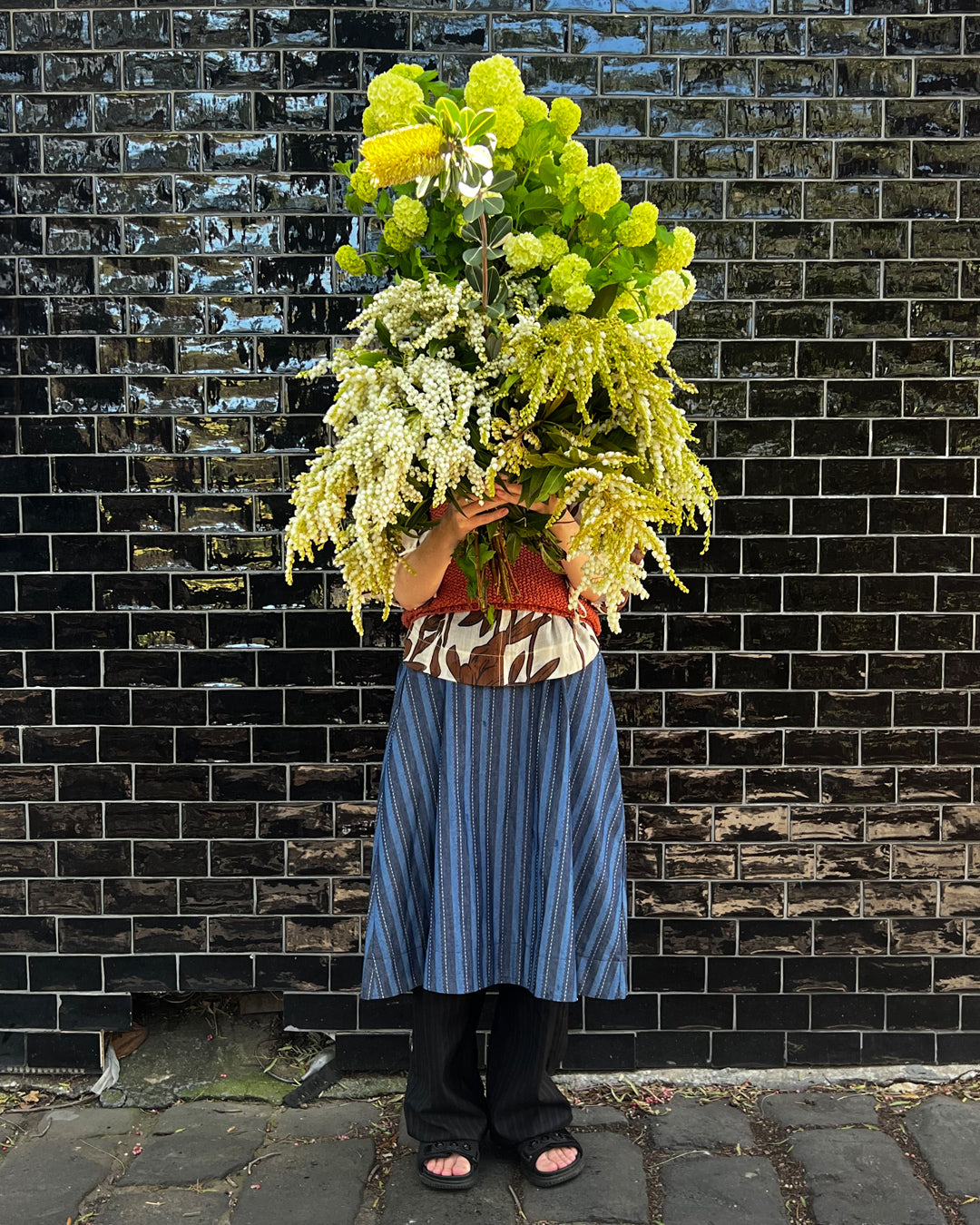 Styled here with the Toucan Gallery Skirt, Natives Shirt and Ticking Stitch Dress