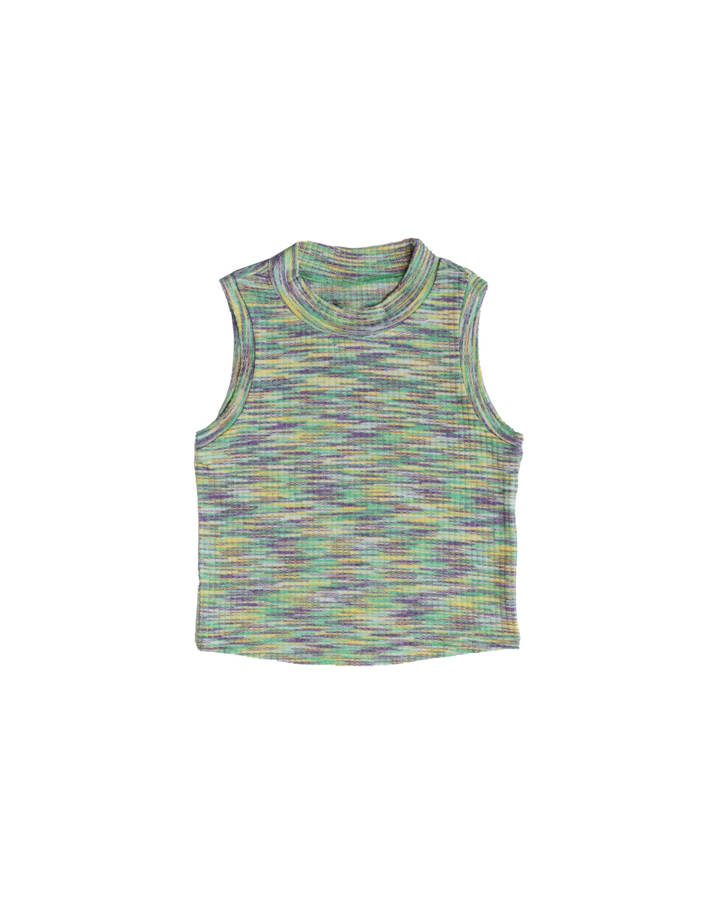 The perfect summer tank in a mixed knit tank of sea inspired blues and greens. A classic crew neckline, slim fit body and clean sleeveless line to style with all your favourite Spring pants and shorts. This is our best selling Radio Tank cut.