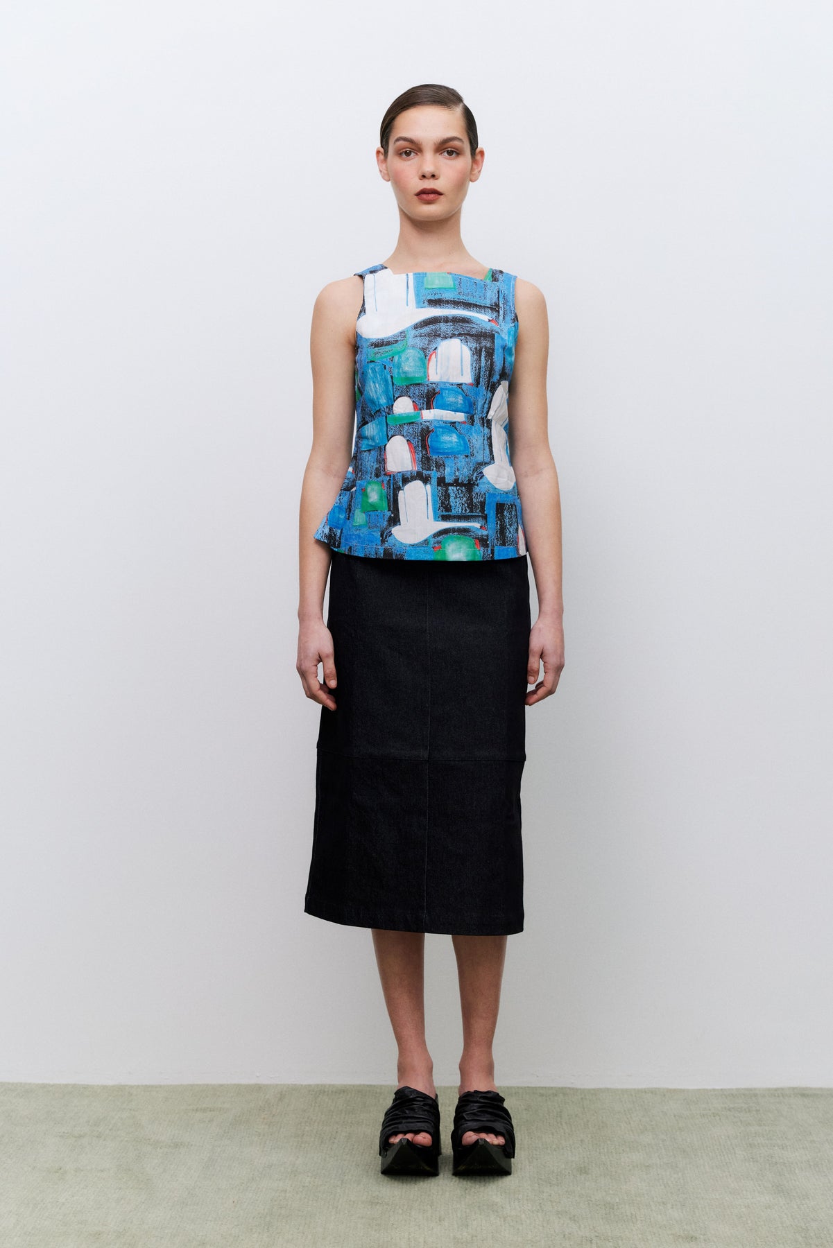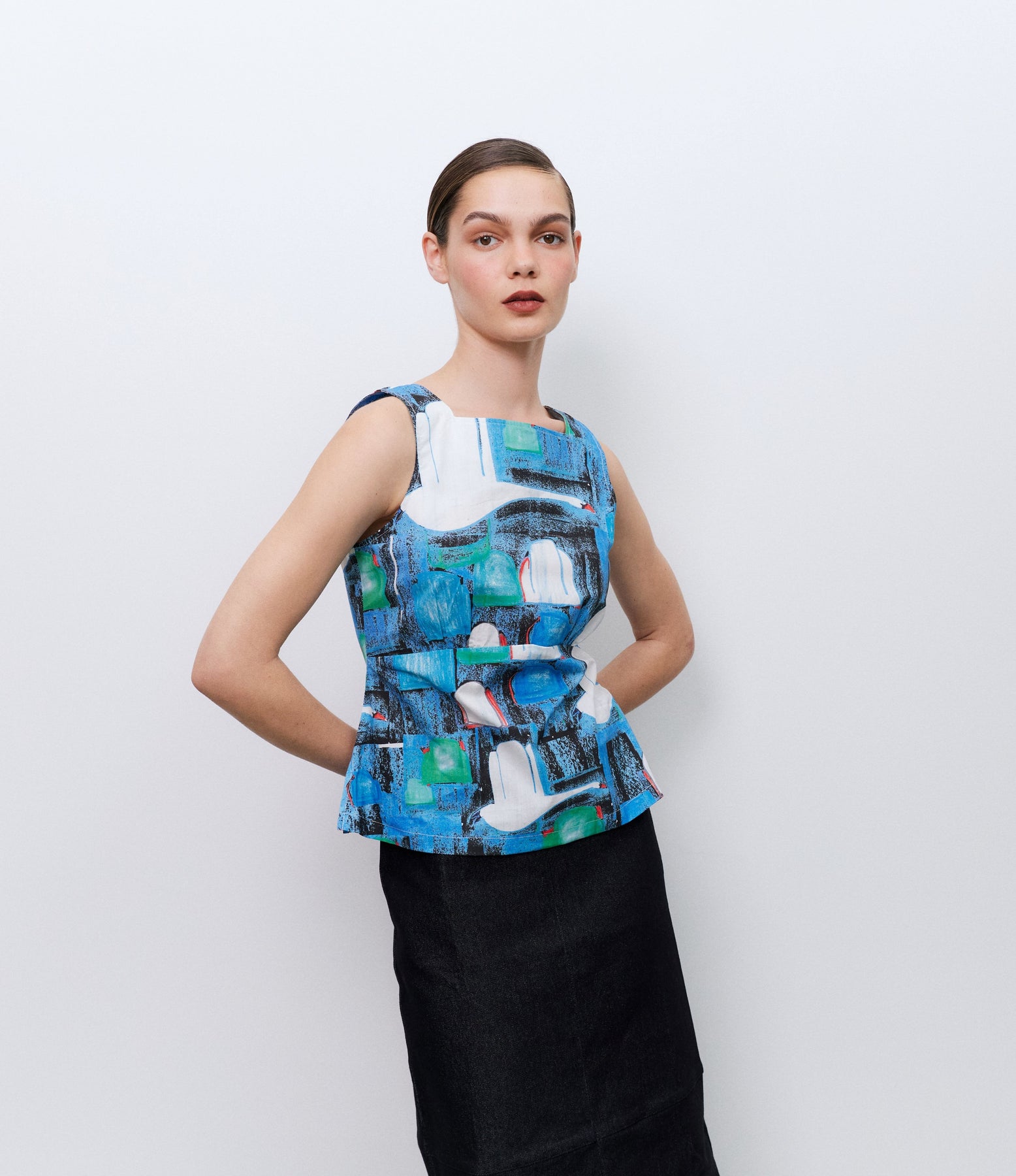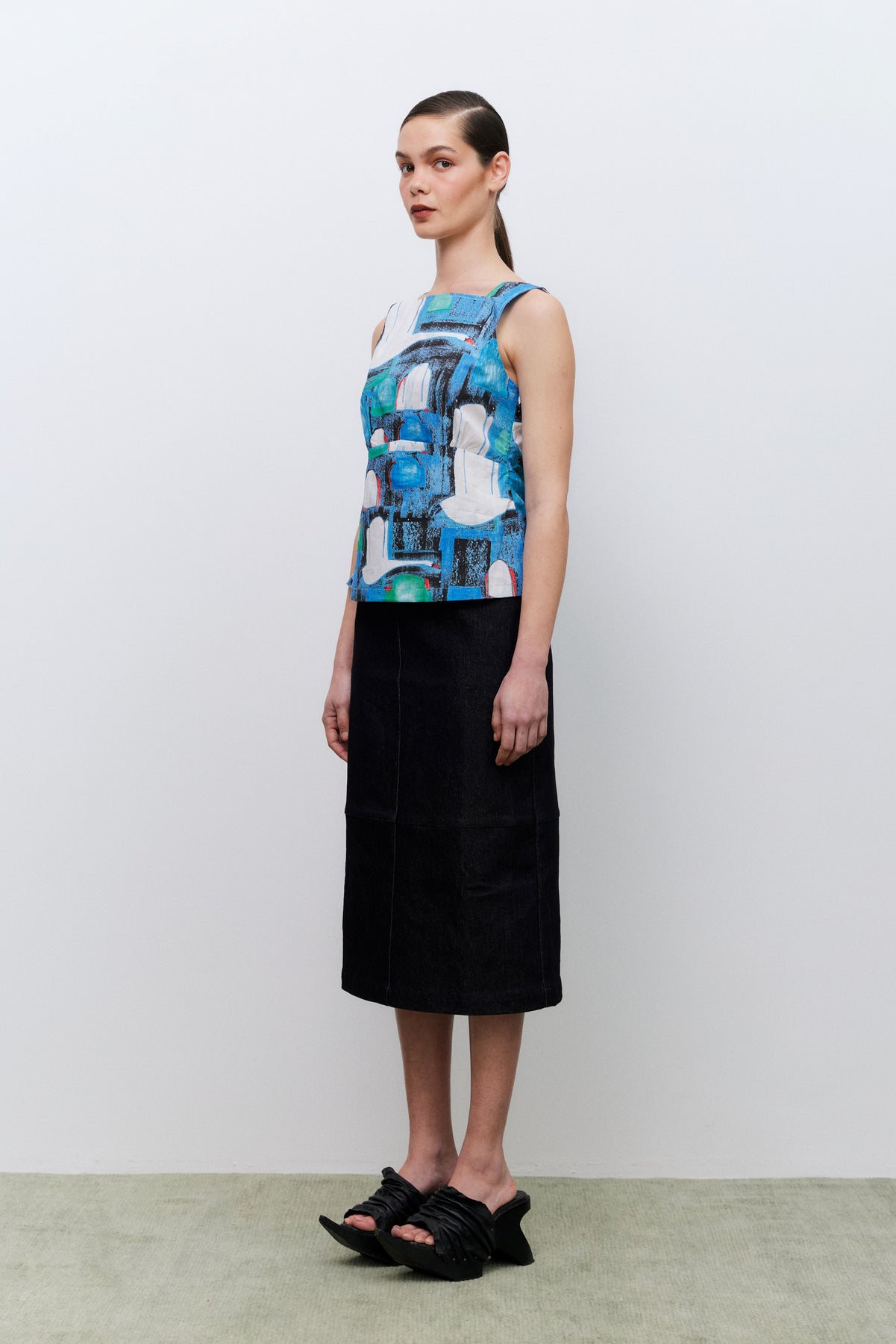 Square neck top with subtle curved waistline under the bust, kick out hemline with side splits. In our stunning new print for Spring Summer, a pastel drawing of swans in flight, through skies of jellies.