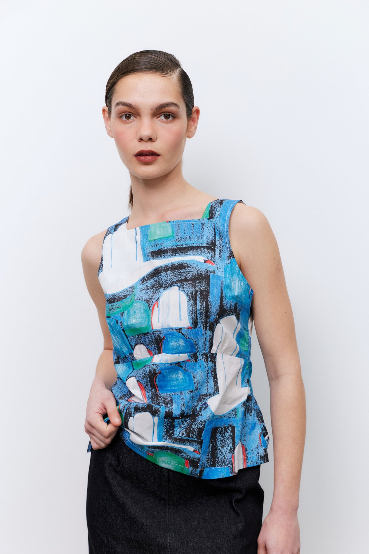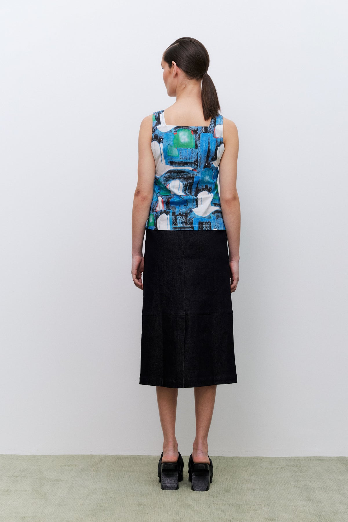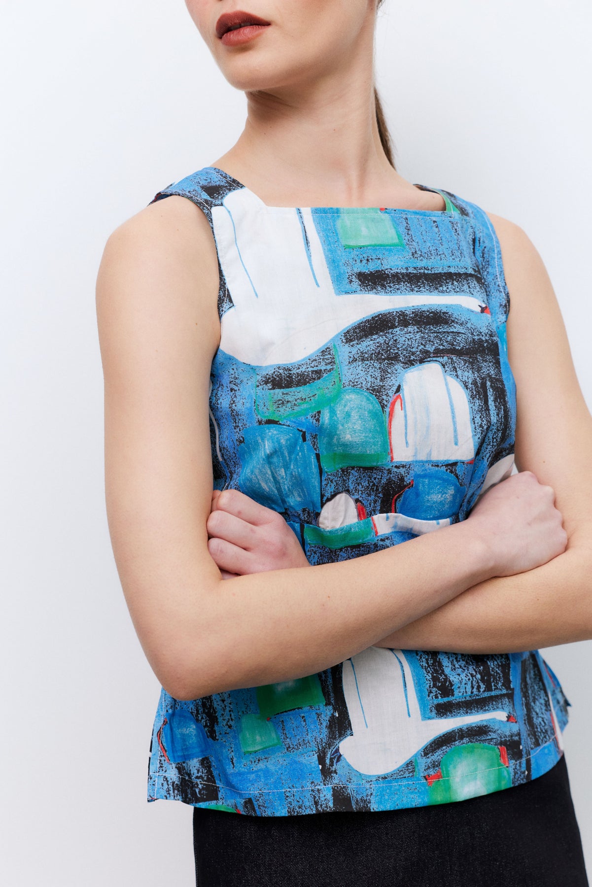 Square neck top with subtle curved waistline under the bust, kick out hemline with side splits. In our stunning new print for Spring Summer, a pastel drawing of swans in flight, through skies of jellies.