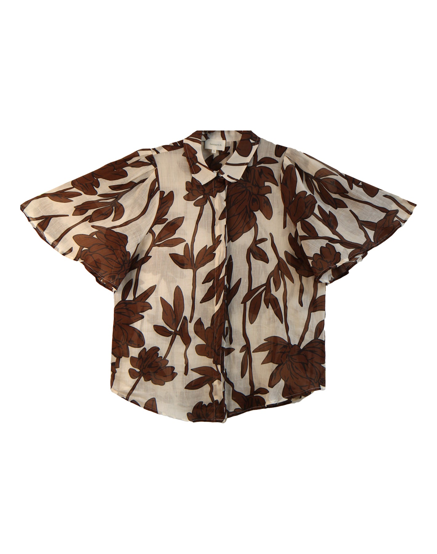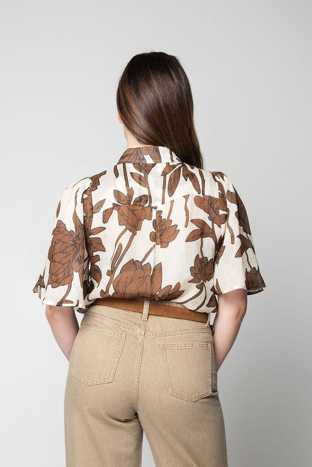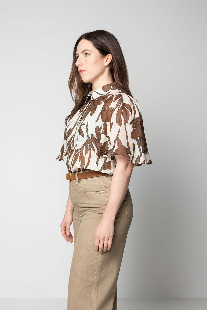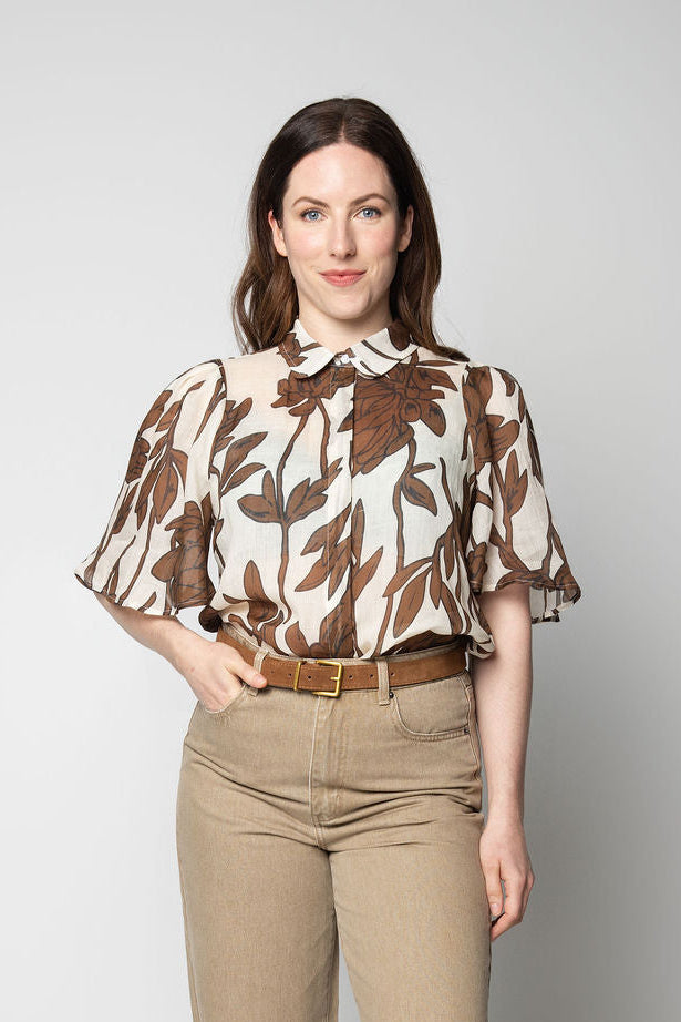 A beautiful fine cotton button up shirt with full statement sleeves, in our new Natives print for Summer.