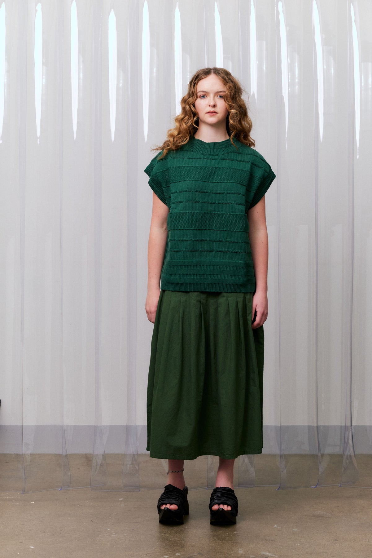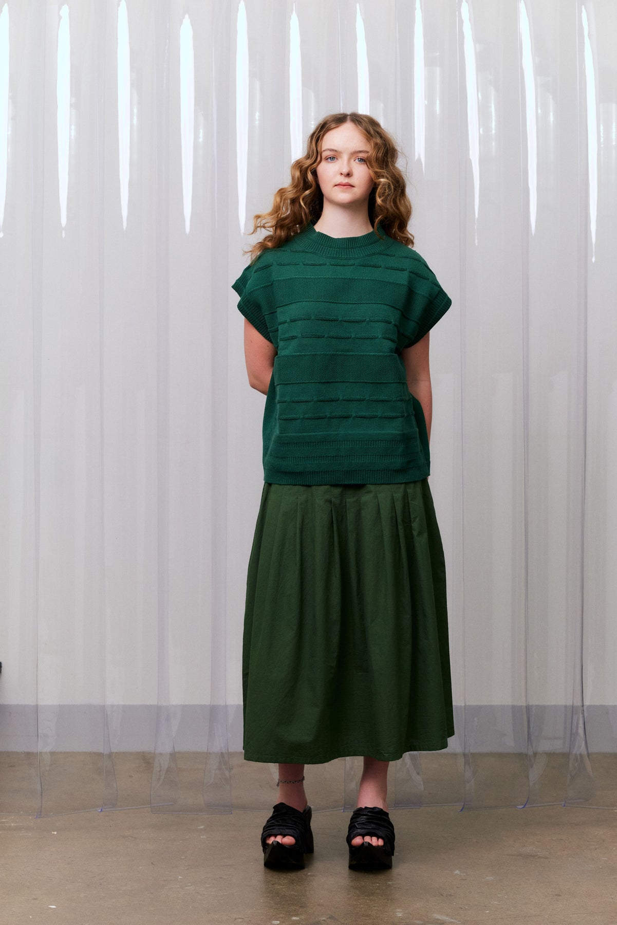 Our favourite new skirt featuring tucked pleats from waist to hip, a midi length, set on a waistband with zip at the side. This silhouette is from our much loved summer dress, the Buttoned Picnic Dress, turned into a versatile Spring staple skirt.