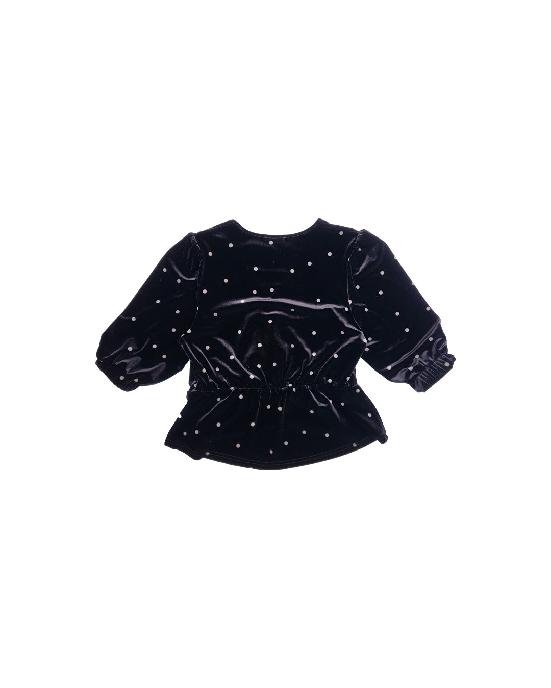 Beautiful V neck top in velvet. This top is very flattering on with a V neckline, elastic waist and full hem set on a 3/4 sleeve on a stretchy cuff. Perfect for an evening out or team with jeans for a casual feminine look.